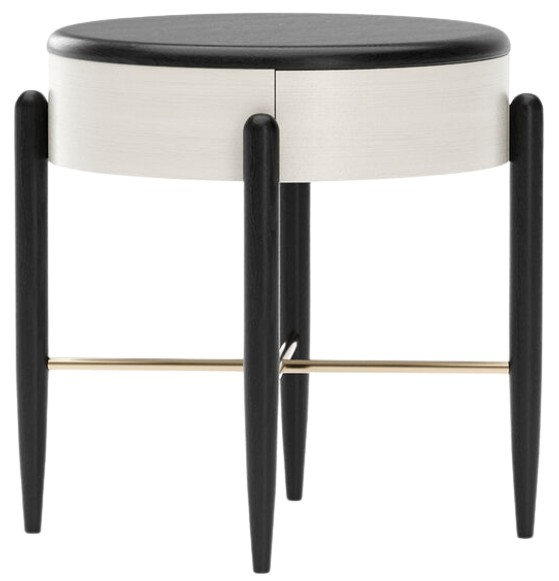 Sculptural and versatile, the Madera accent nightstand floats a round Opal Ash case on tapered Modern Walnut legs with a Brushed Gold stretcher. A discreet drawer preserves the clean, fluid form—perfect bedside or as a living room end table.Read More