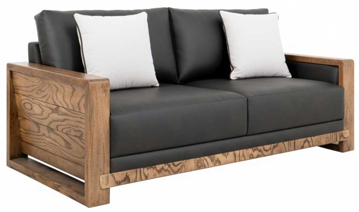 Upholstered in premium brown faux leather, the seat and back deliver a rich, luxurious look that’s as durable as it is beautiful. High-resiliency foam with fiber wrap cushioning ensures lasting comfort, perfect for entertaining, relaxing, or simply enjoying quiet moments at home. What truly sets this loveseat apart is its beautifully designed, gently squared armrests, which enhance both its visual appeal and ergonomic comfort. The exposed wooden sides and legs, finished with intricate detailing, reflect timeless sophistication and expert craftsmanship, making this piece a true statement in any room. Redefine your space with furniture that makes a statement because every home deserves a touch of artistry.
