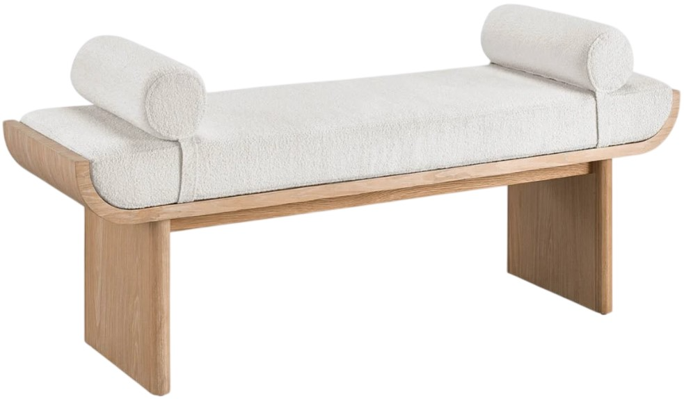 Artistic and appealing, the Sischo bench adds layers of texture and inspired aesthetic to any home space with an upholstered body, a fresh oak-finished frame, and removable bolsters. Designed for comfort and versatility, it provides stylish extra seating, making it a functional accent piece perfect for bedrooms, entryways, or living spaces.Read More